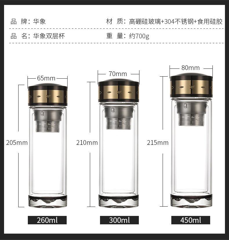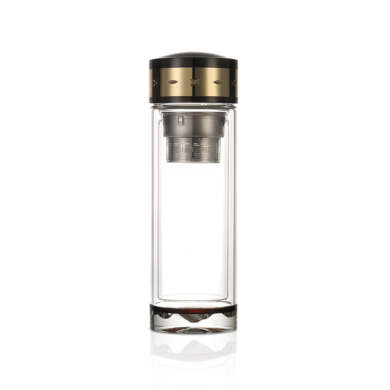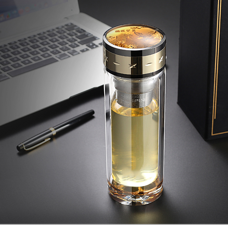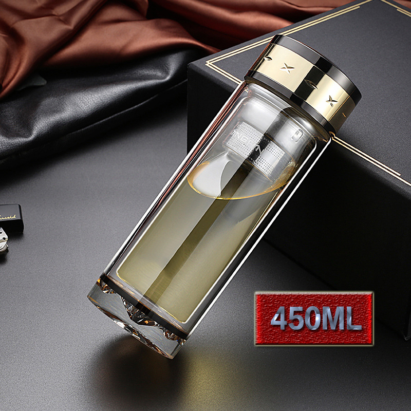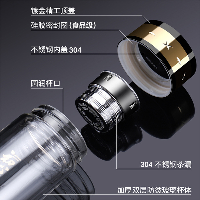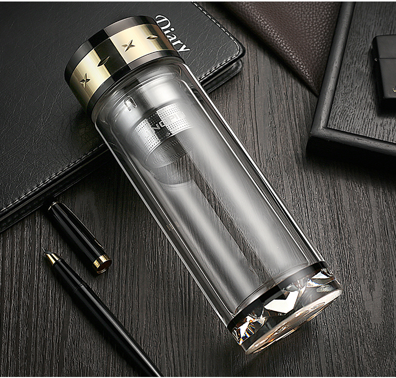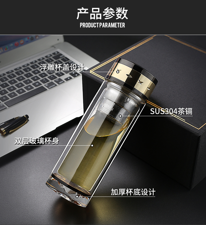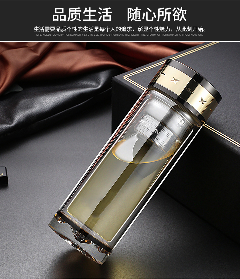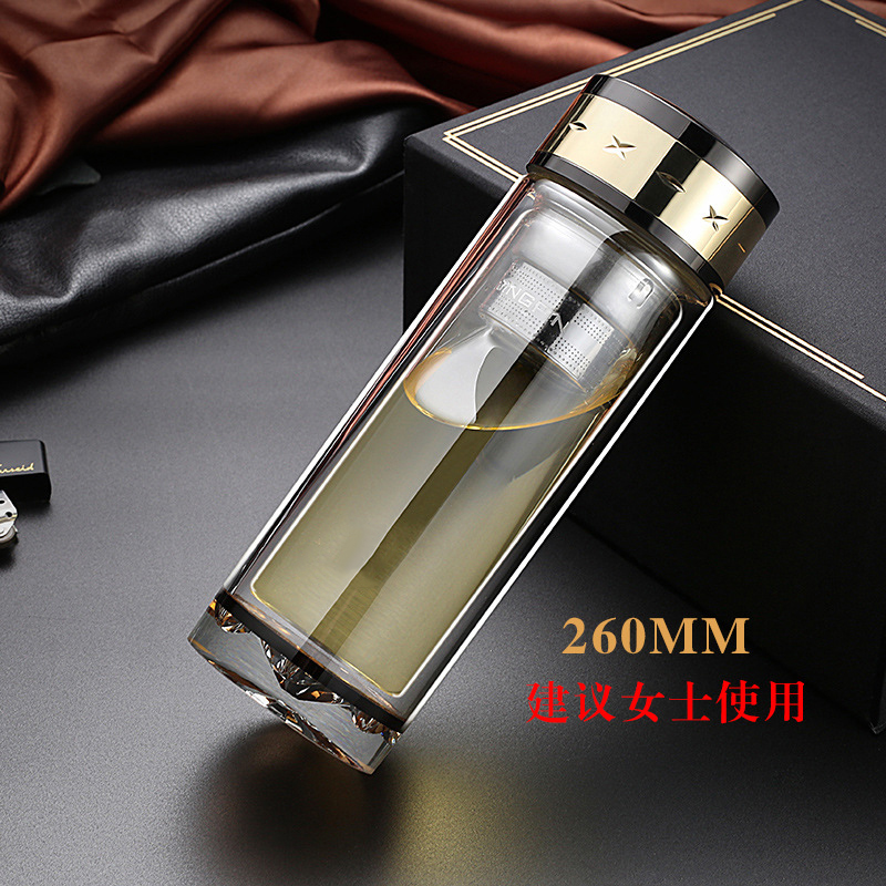 水晶雙層玻璃杯商務(wù)辦公便攜泡茶男女泡茶大容量LOGO