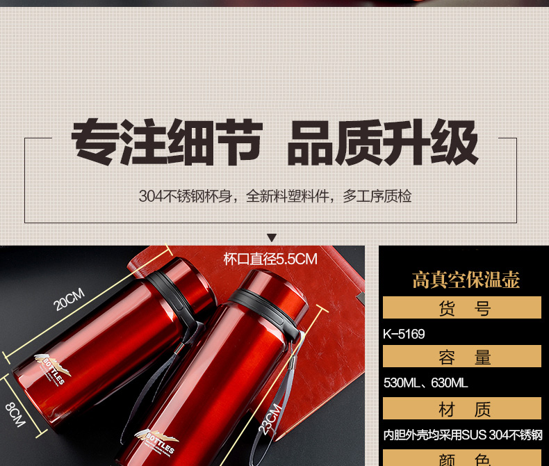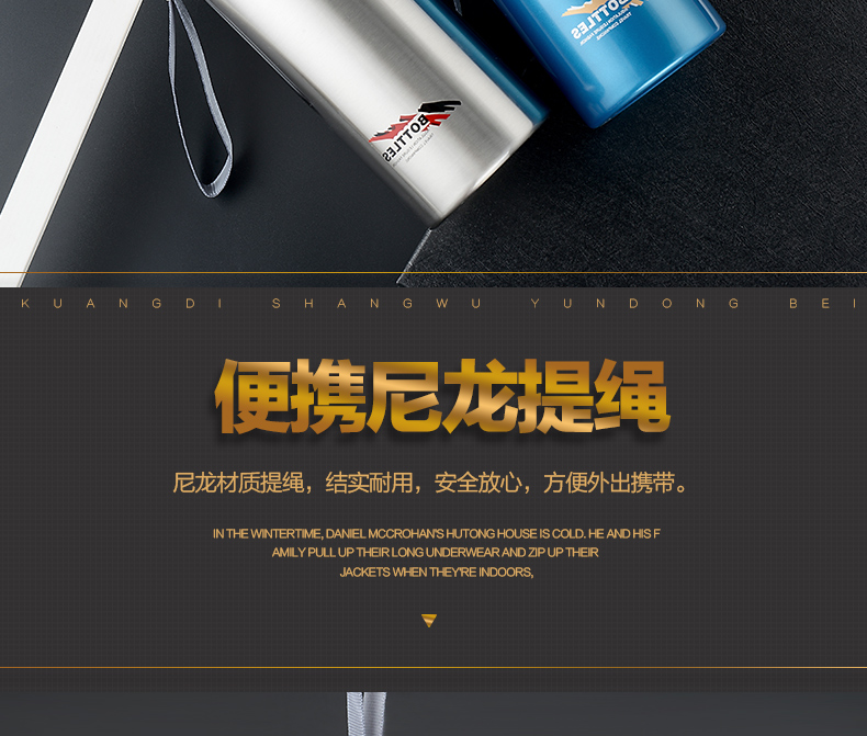 真空保溫杯創(chuàng)意禮高檔不銹鋼子彈頭戶外隨行吊帶定制水壺杯子