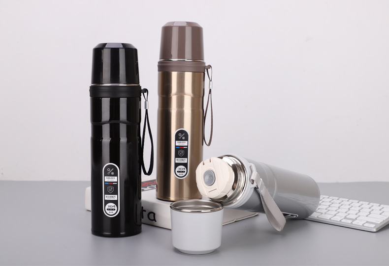 新款大容量提繩保溫杯戶外便攜304杯蓋水杯企業(yè)年會禮品定制杯子