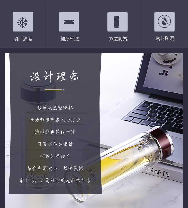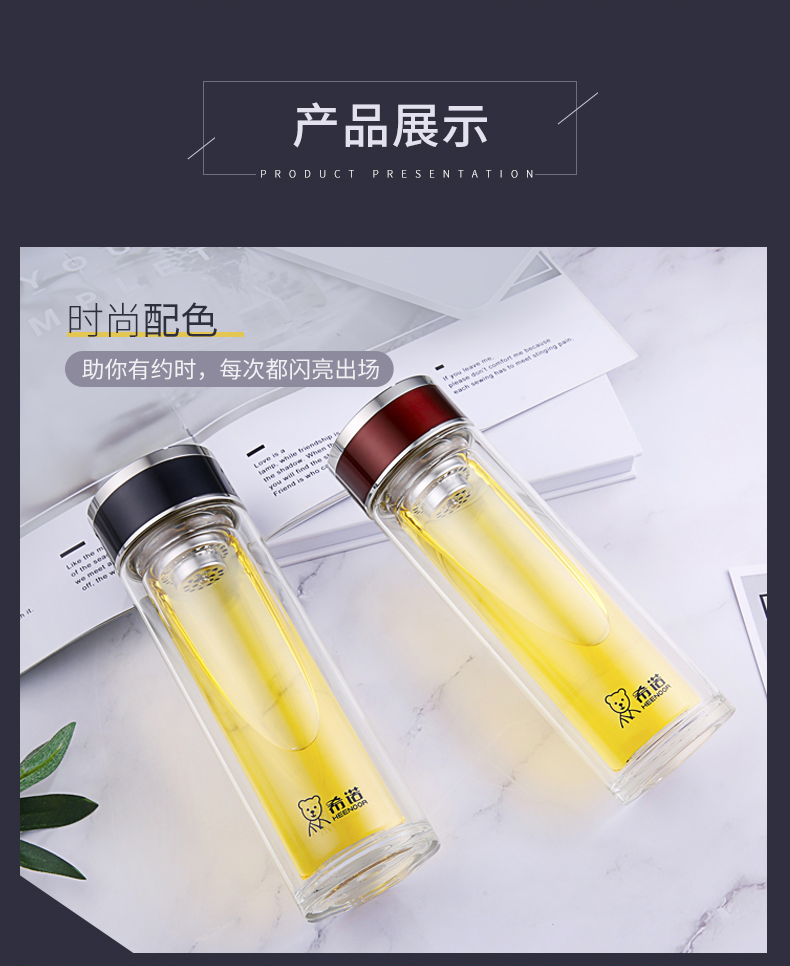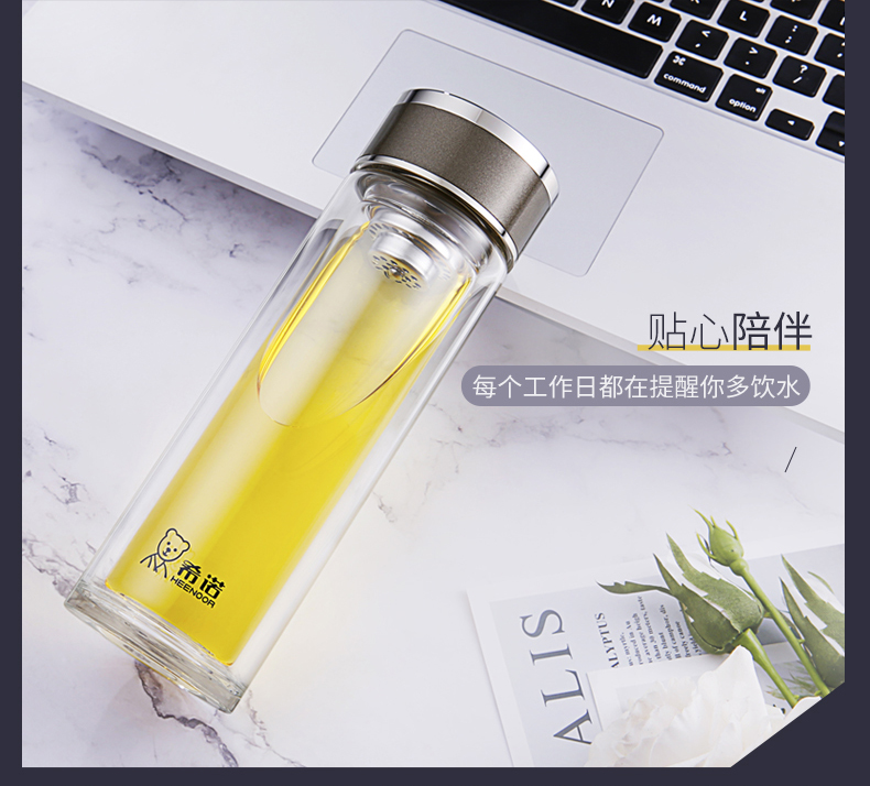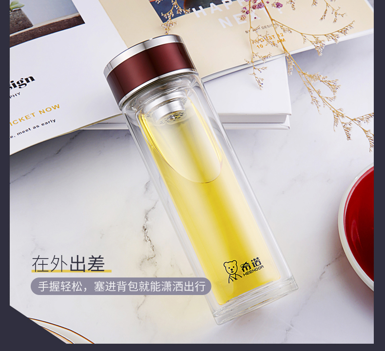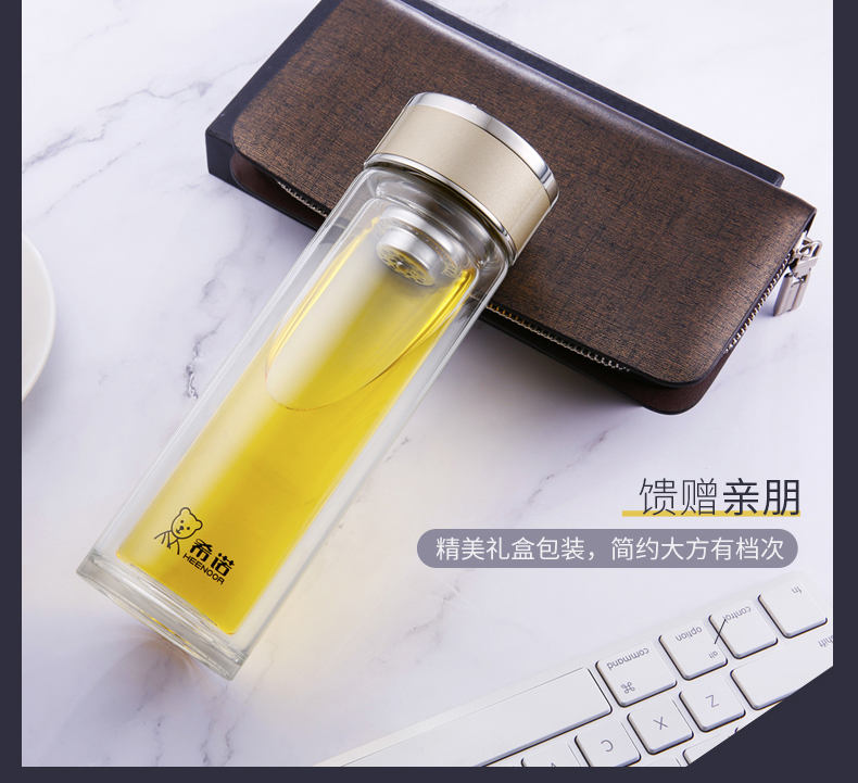 希諾玻璃杯旗艦店官網(wǎng)男女士雙層隔熱防燙商務簡約泡茶便攜水杯
