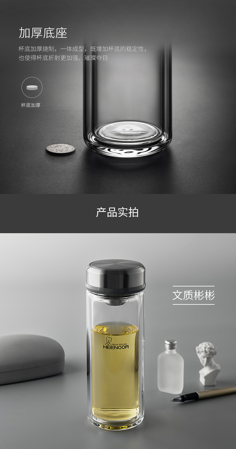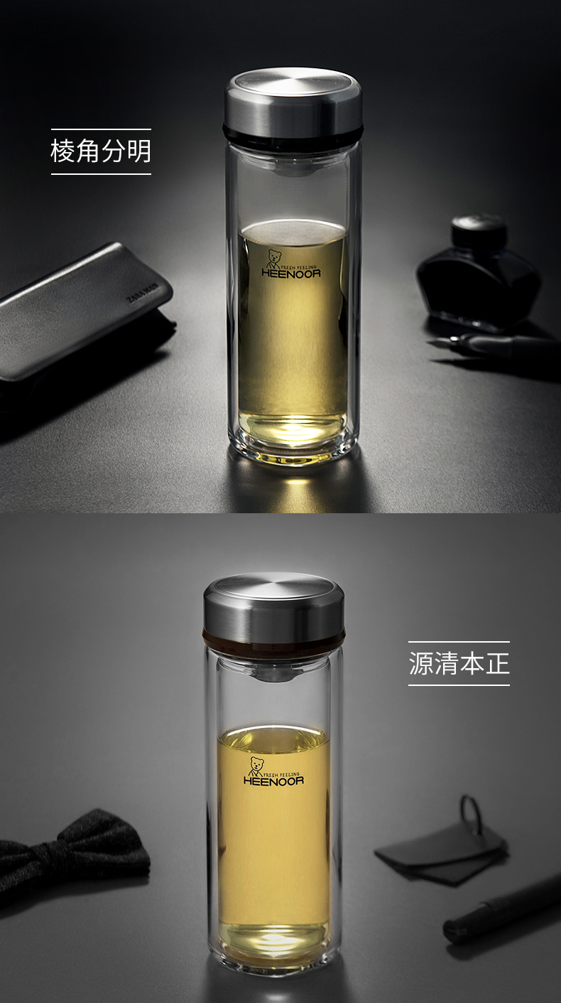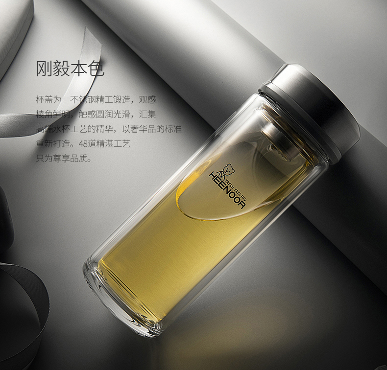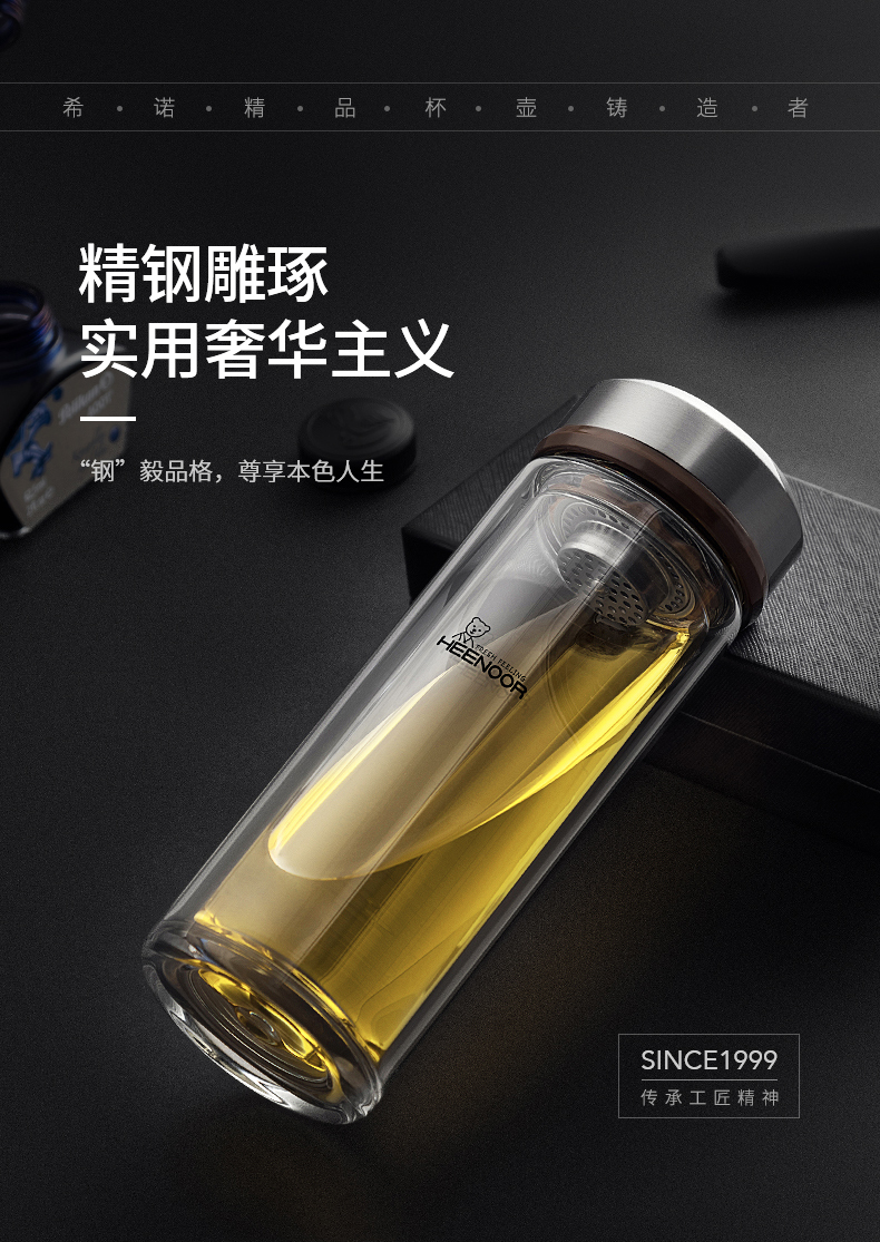 希諾雙層玻璃杯男士辦公客廳家用透明簡(jiǎn)約杯子過(guò)濾加厚泡茶杯定制