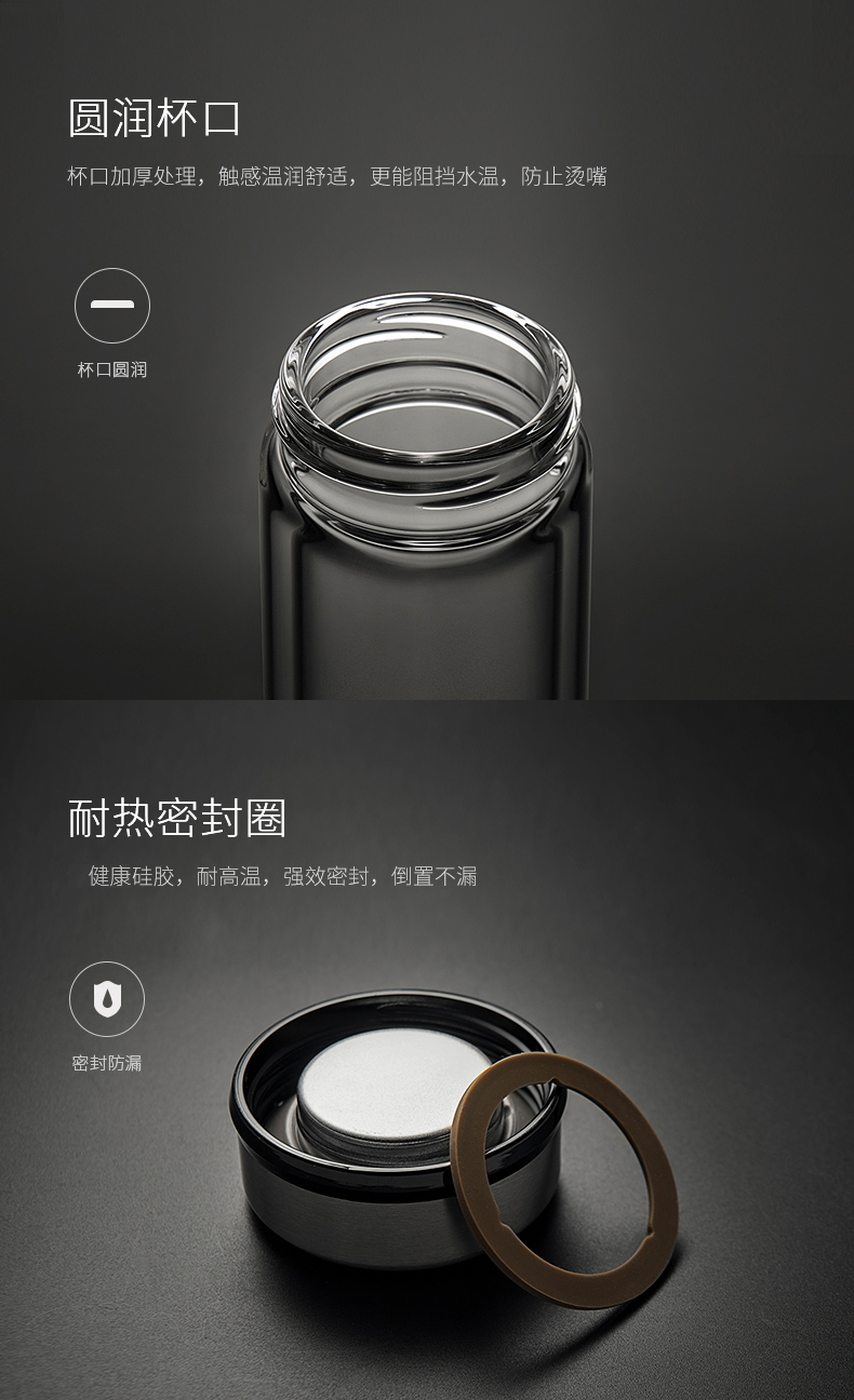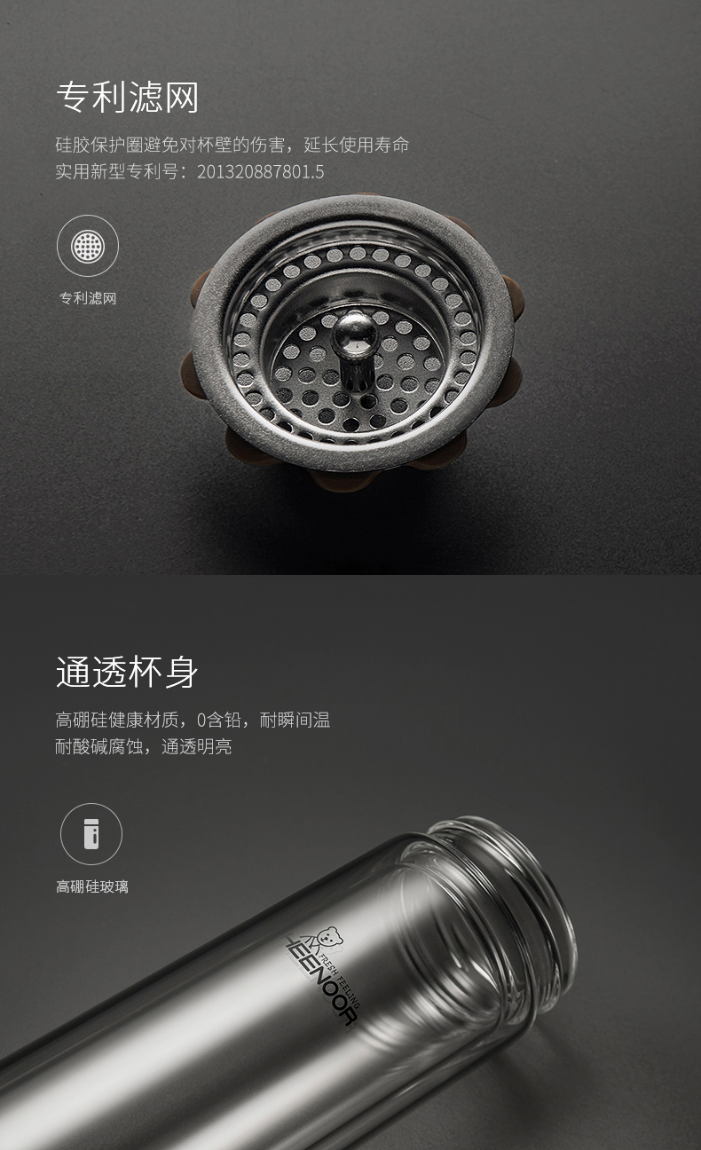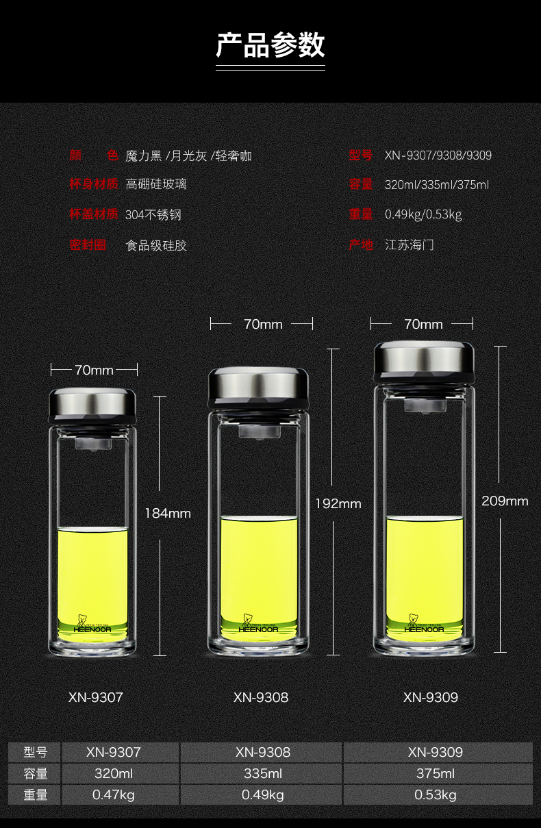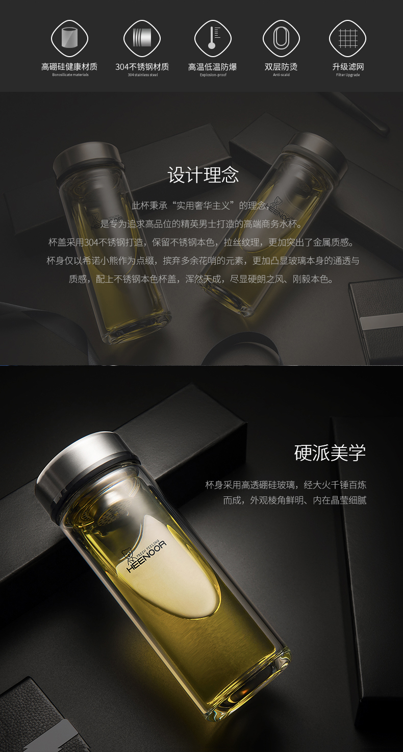 希諾雙層玻璃杯男士辦公客廳家用透明簡(jiǎn)約杯子過(guò)濾加厚泡茶杯定制