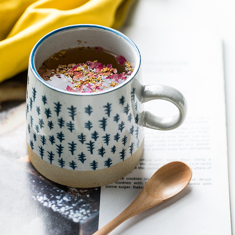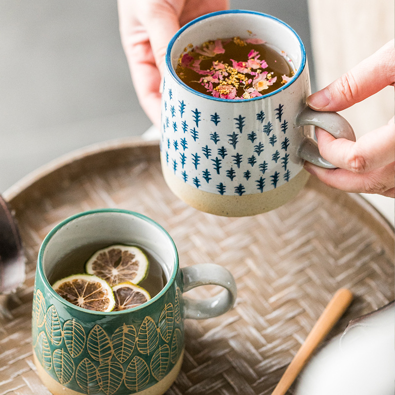 華孚復(fù)古咖啡杯陶瓷杯日式田園茶杯水杯浮雕粗陶馬克杯情侶杯送禮